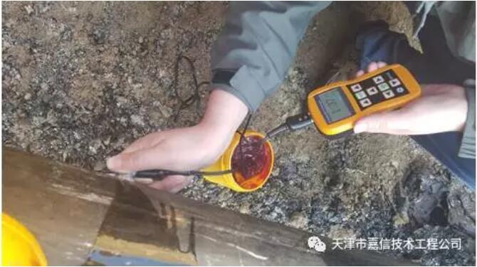 自金属磁记忆技术应用于管道检测项目中以来,天津嘉信已多次积极投身于检测现场,并且检测效果显著,成绩斐然。17年3月28日,JX-MTM金属磁记忆检测仪在新疆进行检测,针对某场站一条1km的管线试验段,实施了现场检测并对检测出的异常段进行了开挖验证,发现管道内腐蚀情况严重,在6点钟方向及7点钟方向位置剩余壁厚仅为1.77mm和1.37mm,其余位置剩余厚度均在6.6mm左右,这一检测成果大大鼓舞了潜心多年研究金属磁记忆检测技术的嘉信人,这一成果表明,金属磁记忆技术将切实地为管道检测提供一种高效的新选择!
