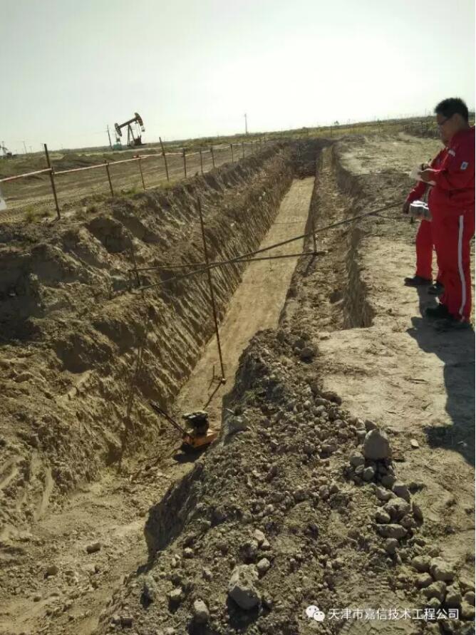 2017年8月天津嘉信一线的技术人员不惧骄阳的炙烤,不顾汗水一次又一次的浸透工服,在中石化西北油田分公司、新疆油田采油一厂、大港油田、华北油田同时展开了160公里、32公里、22公里、20公里四个金属磁记忆检测项目。根据嘉信技术近年来的经验积累,本次检测在技术选择上采用更具有针对性的瞬变电磁检测(TEM)方法进行平均管壁减薄率检测,利用金属磁记忆(MTM)方法进行管体不均匀减薄的定量检测,对于腐蚀较严重的管段和检测数据异常处进行加密检测,对存在强电磁干扰、同沟敷设、套管及弯头等特殊部位应用超声导波检测方法进行管壁横截面积损失率检测,采用此技术方法进行检测可以确保检测的可靠性及可行性。