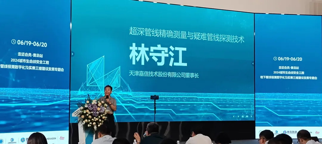 嘉信技术董事长林守江受邀参加本次会议,并在会上作了题为《超深管线精确测量与疑难管线探测技术》的技术交流报告。林总从探测埋地管线所面临的疑难问题入手,介绍了嘉信在超深管线探测定位方面的技术成果,并为水下管线检测提供嘉信方案。