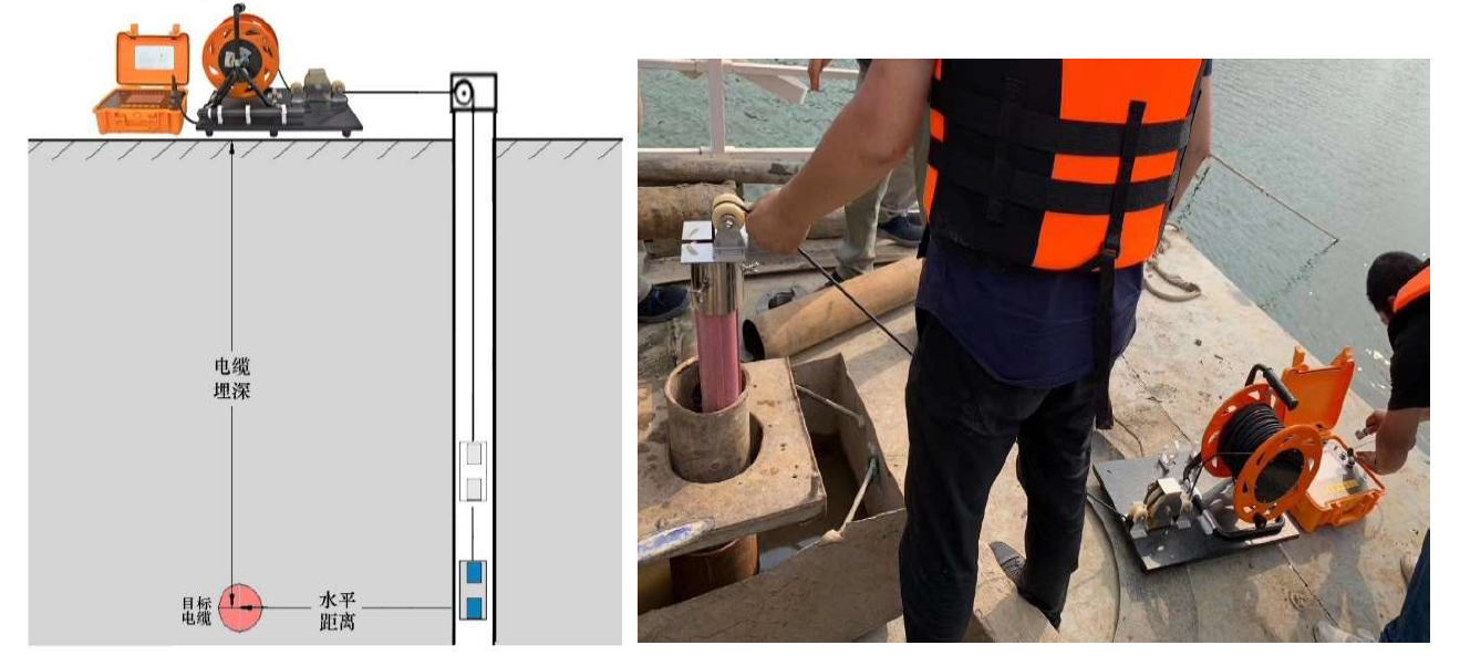 随着定向钻穿越技术的普及应用,管线/电缆的敷设深度可达几十米。该方法有效地解决了管线与道路、河流等障碍物交叉的施工难题。在降低施工成本的同时,也对后期的线缆位置埋深的测量工作提出了严峻挑战。传统的电磁检测方法具有方便快捷的优点,但超深电缆的测量精度不能满足工程精度需要。嘉信公司最新奉献的超深电缆位置测量系统,用于地下电缆的水平位置和埋设深度的精确测量。在工程应用中,最大探测深度只受测量线缆长度的限制,具有定位准确、检测精度高、操作便捷、抗环境干扰能力强等优点。