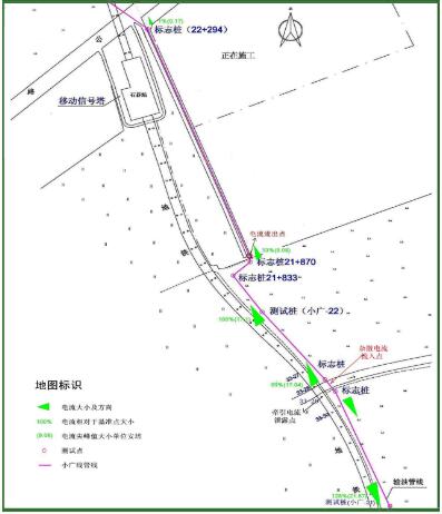 小广成品油输送线隶属于中石化华南销售公司管道管理处。该管线于2003年建设,环氧煤粉末防腐层,外加电流阴极保护。由于轨道交通的影响,轨道中泄漏的电流对小广线管道造成杂散电流干扰。受业主方委托天津嘉信技术工程公司对影响管道的杂散电流干扰源进行检测。