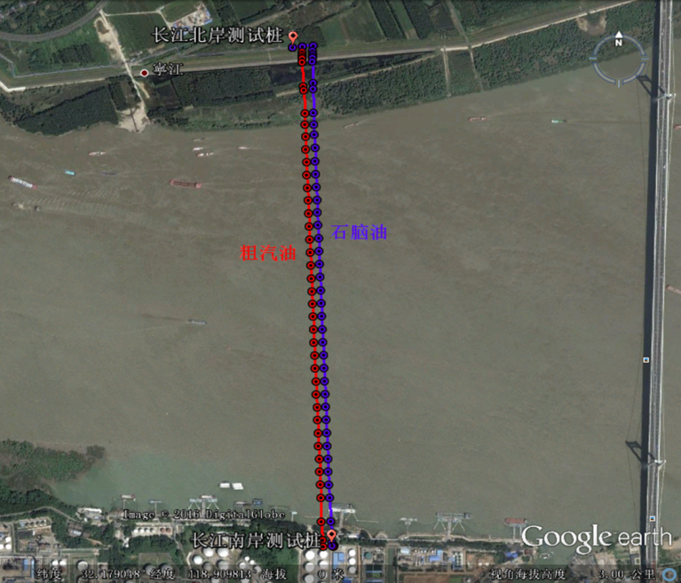 1、使用天津嘉信公司水下ROV检测系统在现场对水下管道路由进行探测,对管道埋深进行测量,以及2D声呐系统环境的成像,验证了石脑油和粗汽油管道穿越管段在水下的埋设情况及管道上方的覆土层情况,两条被检测管道水下管段没有出现管道悬跨现象;石脑油管道穿越管段上方的覆土深度在11.39m和28.63m之间,粗汽油管道穿越管段上方的覆土深度在11.25m和30.42m之间,能够保证埋设位置管道的安全。